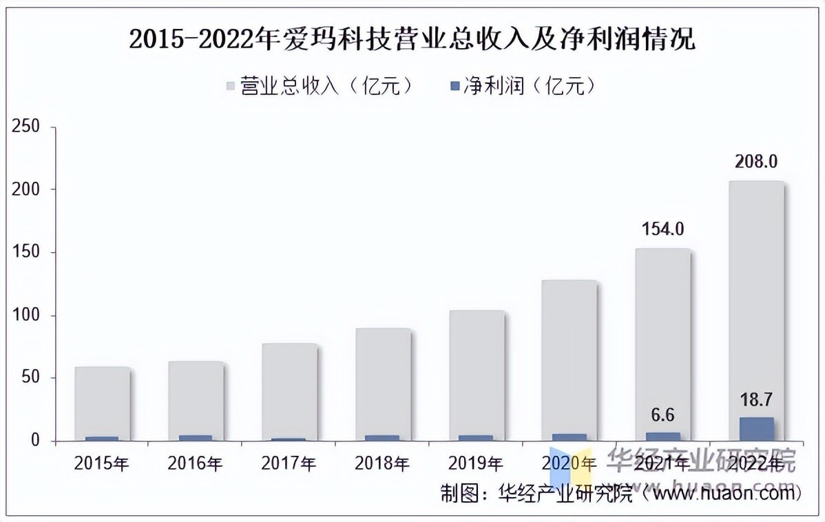 爱玛科技成立于1999年,2004年步入电动自行车行业,深耕电动两轮车市场近20年,连续多年荣获中国品牌力指数(C-BPI)电动自行车品牌第一名。从公司经营情况来看,据公司公告披露,2022年爱玛科技实现营业总收入208.0亿元,同比增长35.09%,净利润为18.7亿元,同比增长182.14%。